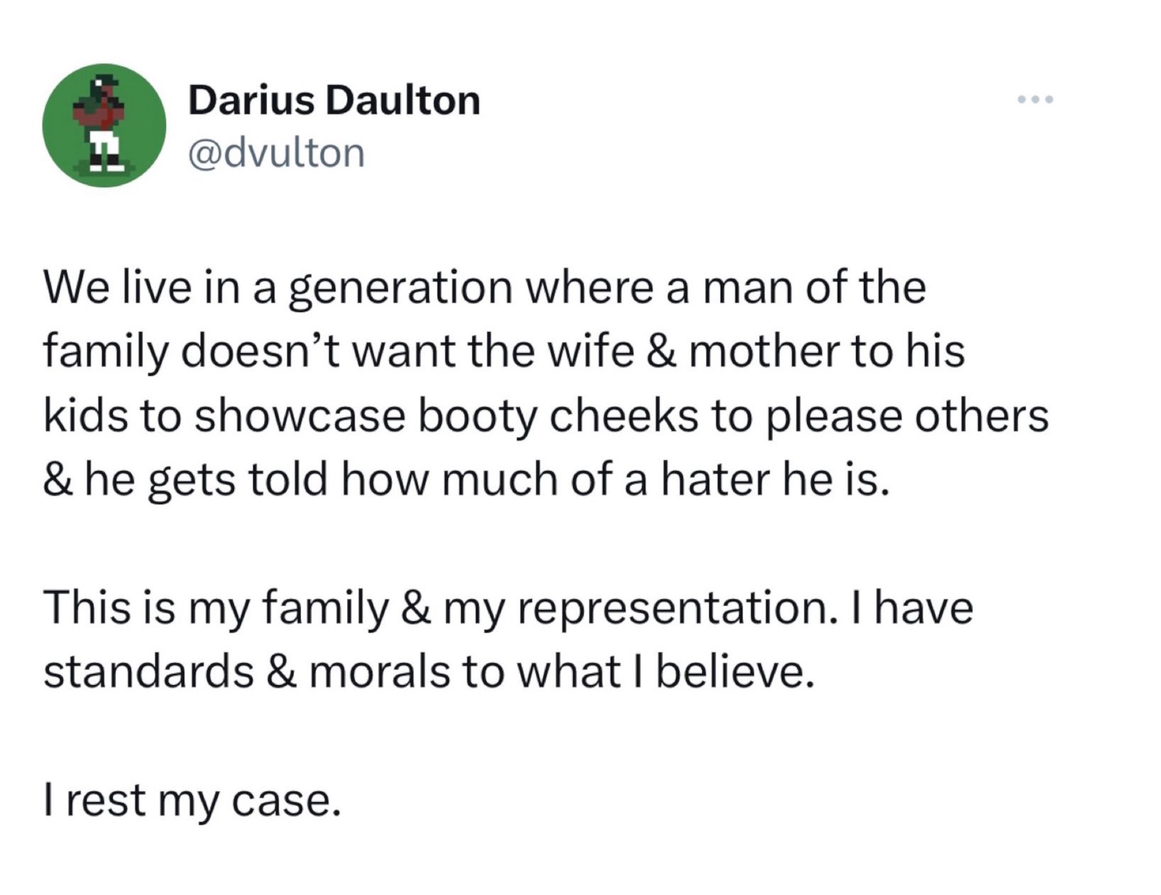 Jackson later defended his tweet, saying that he "has standards" and that he doesn't want his girlfriend to "showcase booty cheeks to please others." He also said that he was "not mad" at Palmer, but that he was "disappointed."